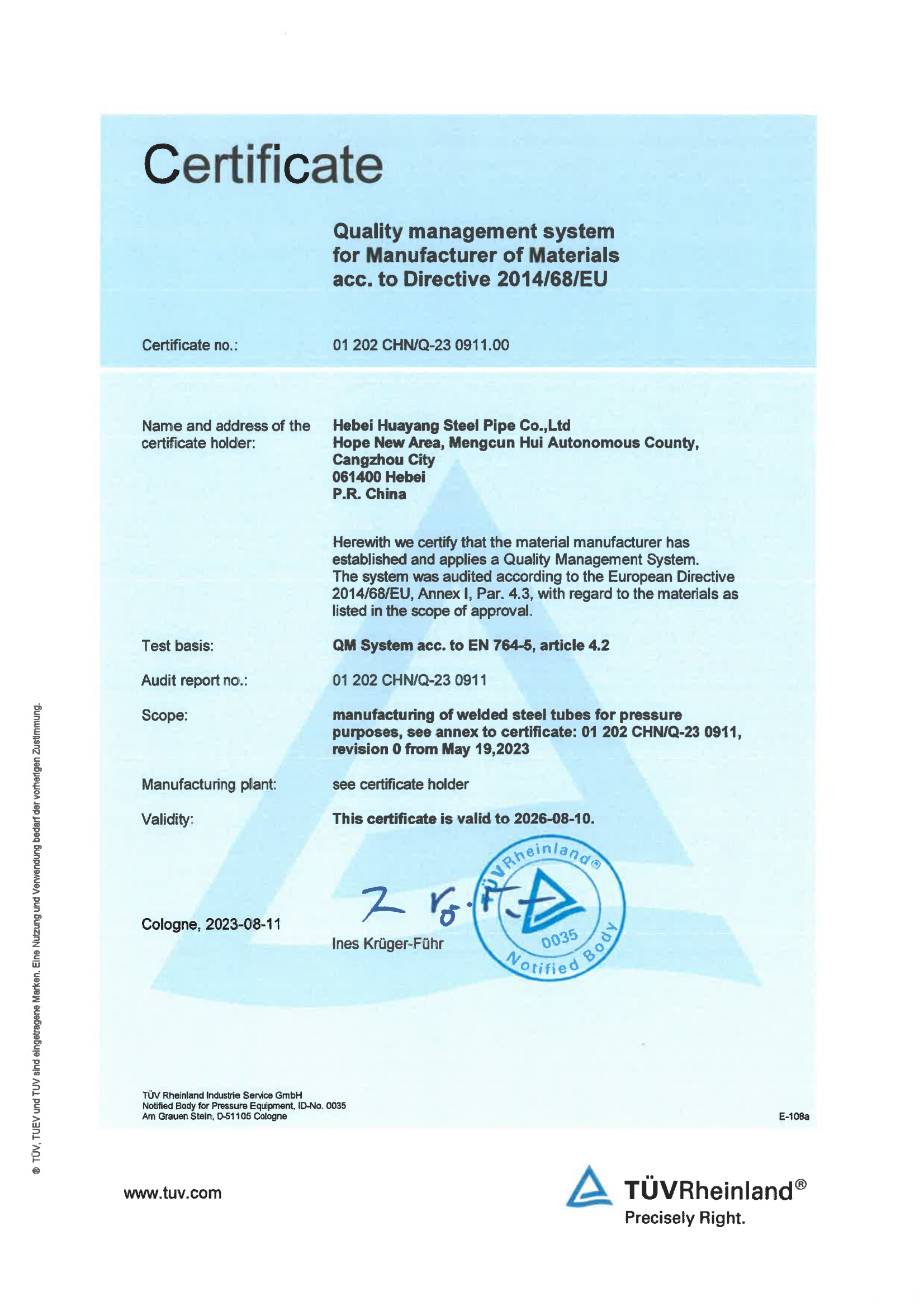 公司現(xiàn)有17條新型的自動(dòng)化鋼管生產(chǎn)線,包括Φ73-660.4高頻直縫焊鋼管生產(chǎn)線14條、Φ406.4-Φ1422.4直縫雙面埋弧焊鋼管生產(chǎn)線3條,并配備有一條防腐生產(chǎn)線,可進(jìn)行3PE、2PE、FBE、2PP、3PP防腐處理,同時(shí)還可提供鋼管深加工服務(wù)。公司擁有先進(jìn)的理化實(shí)驗(yàn)室,可承擔(dān)鋼管的各項(xiàng)物理及化學(xué)檢測(cè)與試驗(yàn)。公司先后取得了ISO9001質(zhì)量管理體系認(rèn)證、ISO14001環(huán)境管理體系認(rèn)證、ISO45001職業(yè)健康安全管理體系認(rèn)證、特種設(shè)備制造許可證、API5L和API2B認(rèn)證證書(shū)、歐盟CE認(rèn)證、俄羅斯GOST認(rèn)證、中海油入網(wǎng)證、安全生產(chǎn)標(biāo)準(zhǔn)化二級(jí)企業(yè)等標(biāo)準(zhǔn)質(zhì)量體系認(rèn)證。